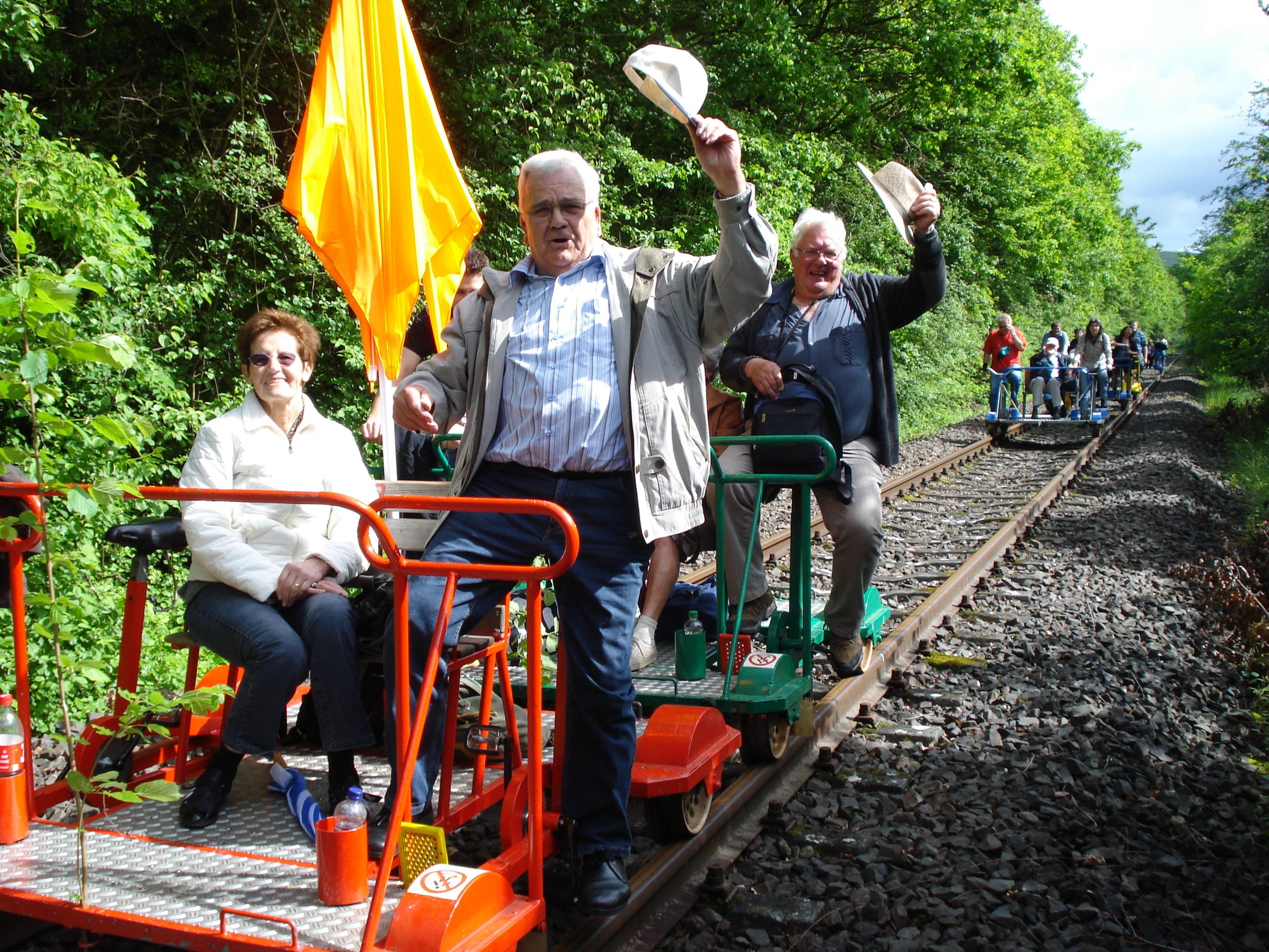 Der 2-tägige Ausflug führte nach Idar-Oberstein, u.a. ins Deutsche Edelsteinmuseum und ins Glantal zur Draisinenfahrt über 40 km bergauf. Zwischendurch wurde zur Stärkung eingekehrt. Auf der Hinfahrt fiel der Bus aus und es musste ein Ersatzbus organisiert werden. Trotz oder gerade wegen dieser Umstände wurde es ein unvergesslicher und sehr lustiger Ausflug. Eine besondere Überraschung gab es für Rolf, der eine eigens erstellte Foto-Collage feierlich überreicht bekam.
