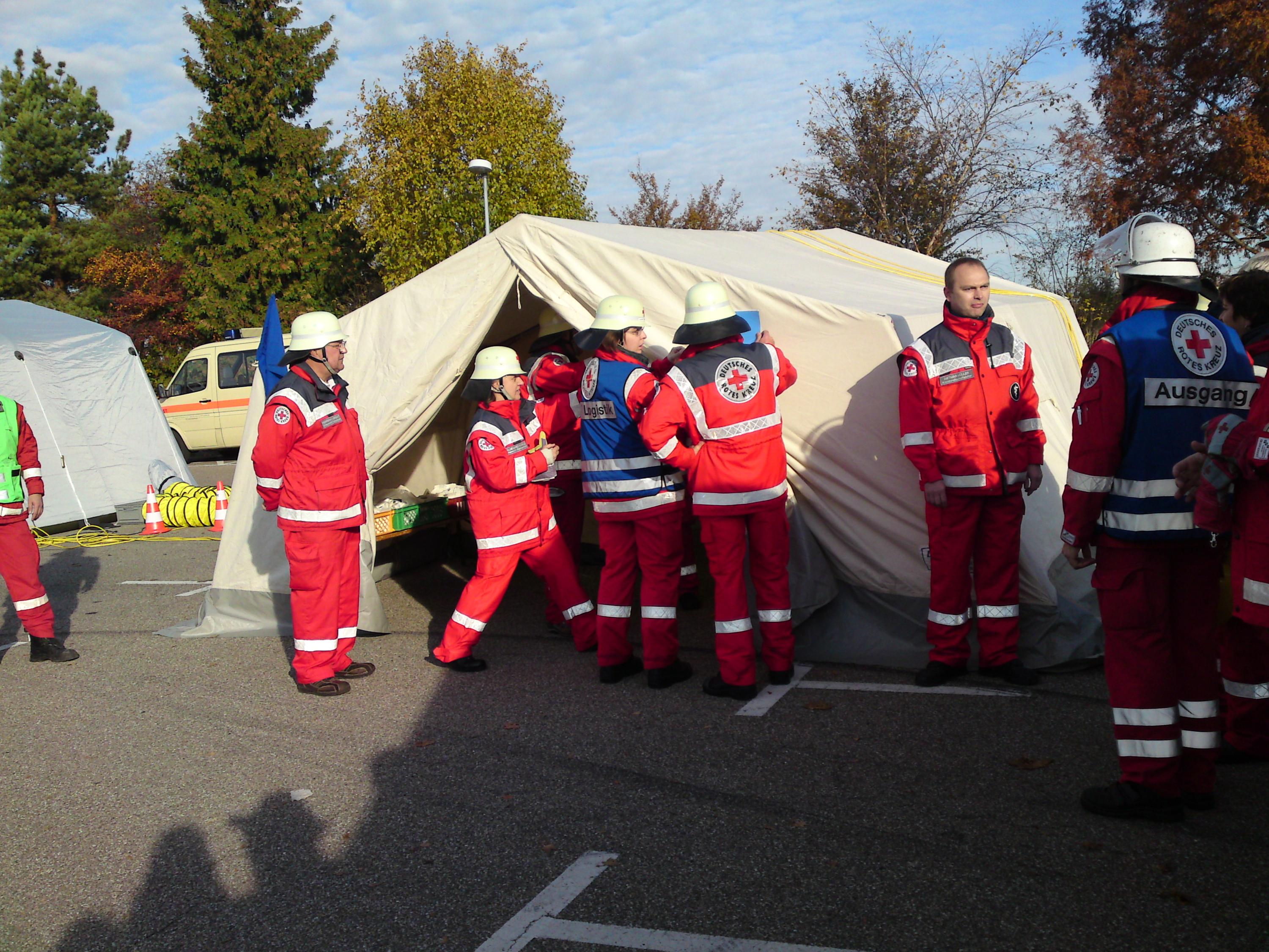 Vier Aktive nahmen neben rund 1.000 Einsatzkräften, Statisten und Beobachtern an der NetEX Übung der Landkreise Ludwigsburg und Böblingen: „Terroranschlag“ in Ludwigsburg und Böblingen teil, gemeinsam mit Polizei, Rettungsdienst, Feuerwehr und mehreren Einsatzeinheiten des DRK.