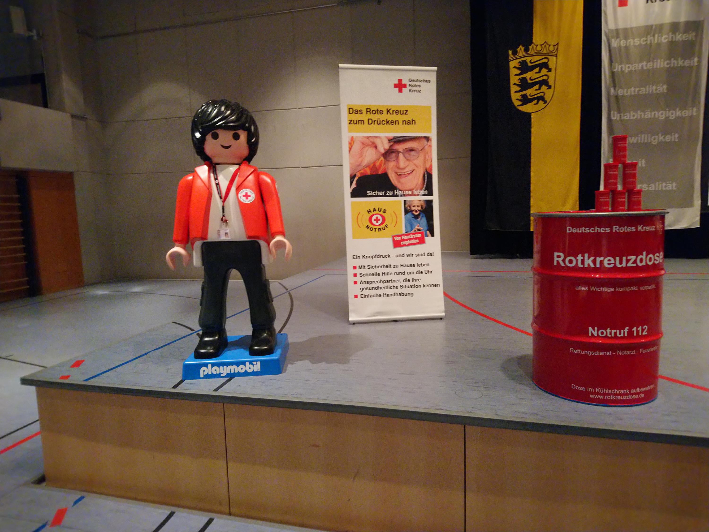 Die Playmobil-Großfiguren „Hans“ als Botschafter der Bereitschaft und „Lisa“ als Botschafterin des JRK unterstützen ab sofort die Öffentlichkeitsarbeit im OV.