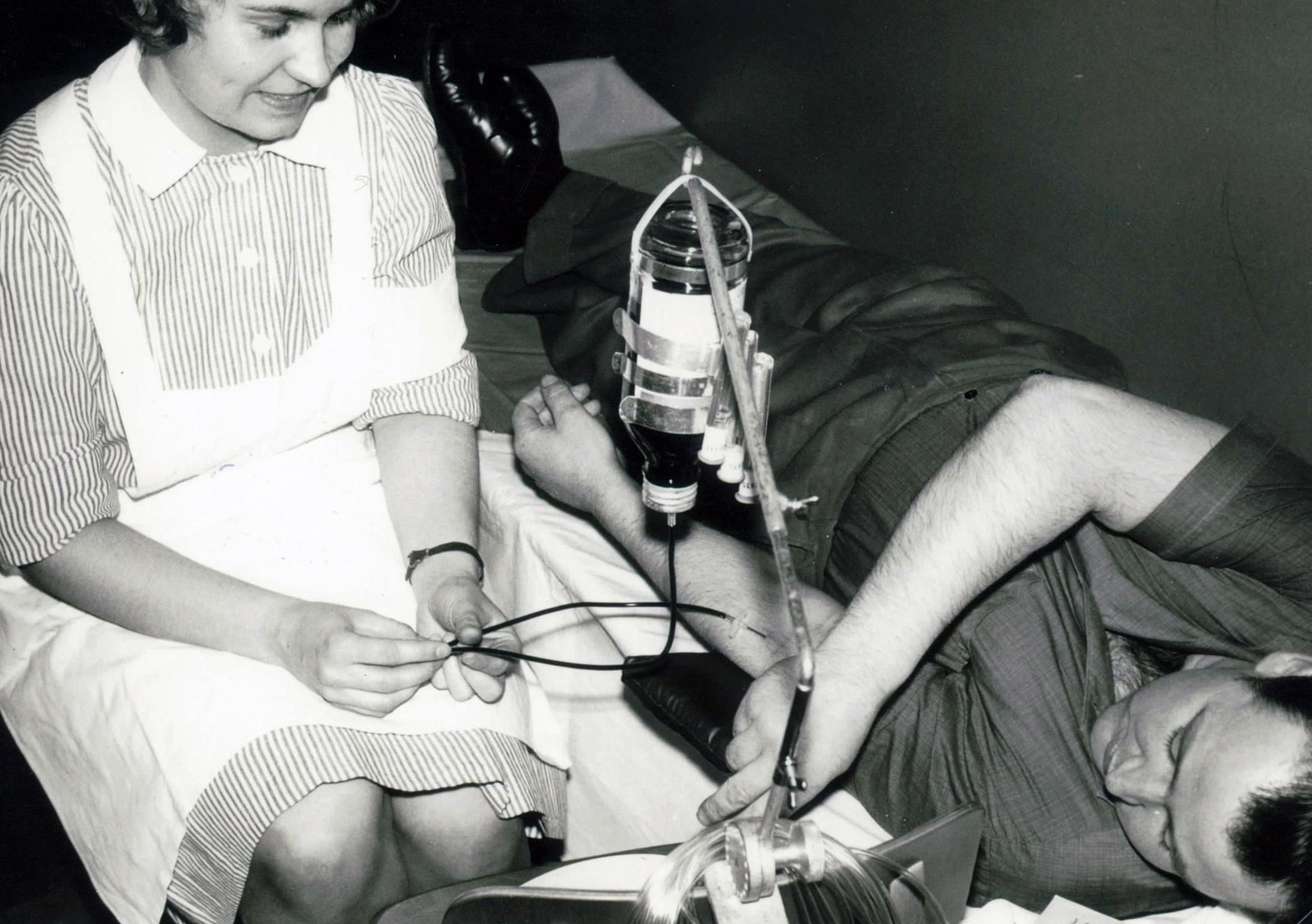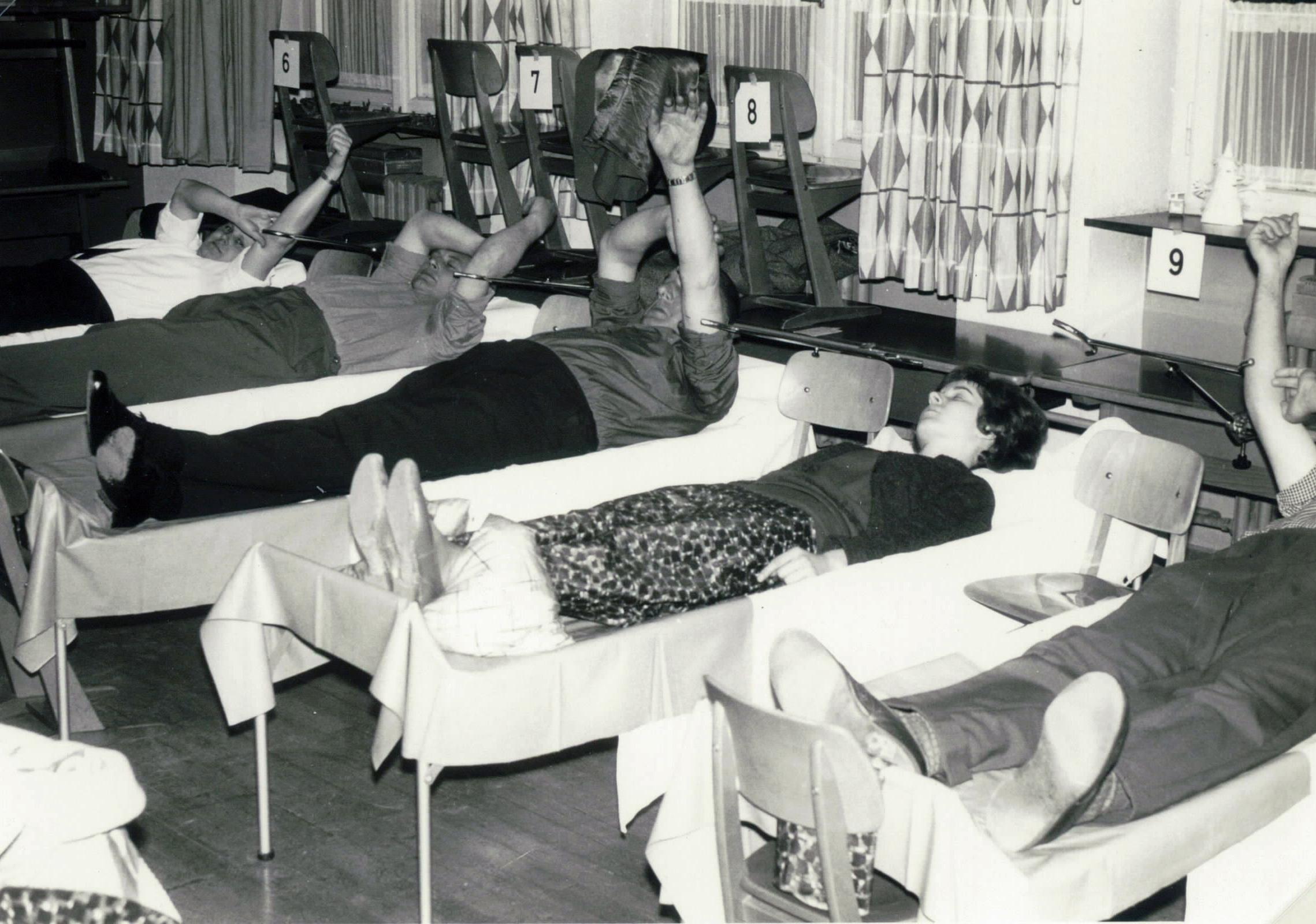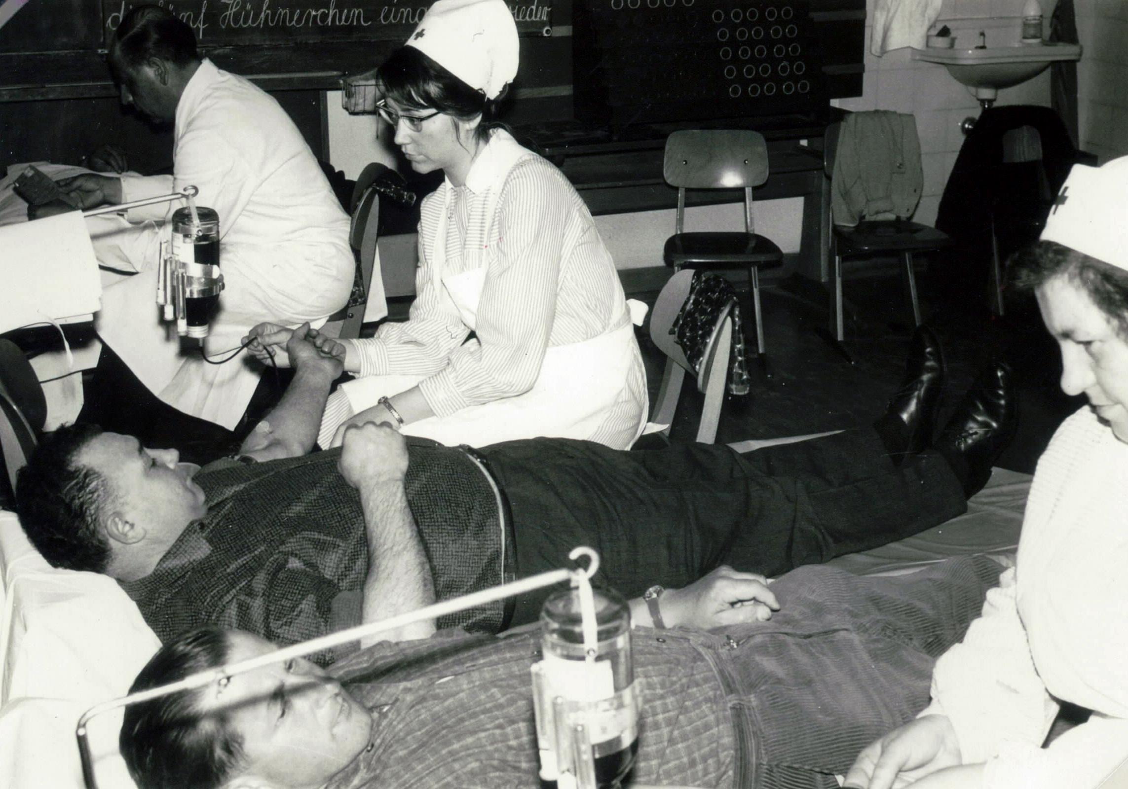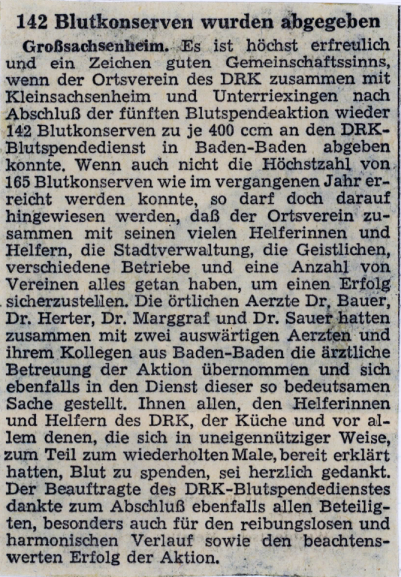 In Sachsenheim wurde die erste Blutspendeaktion durchgeführt. Nachdem für alle Spender eine Karteikarte mit der Schreibmaschine erstellt werden musste, gab es im Vorfeld mehrere Anmeldestellen. Durch das Vorausfüllen der Karteikarten wurde die Wartezeit minimiert.