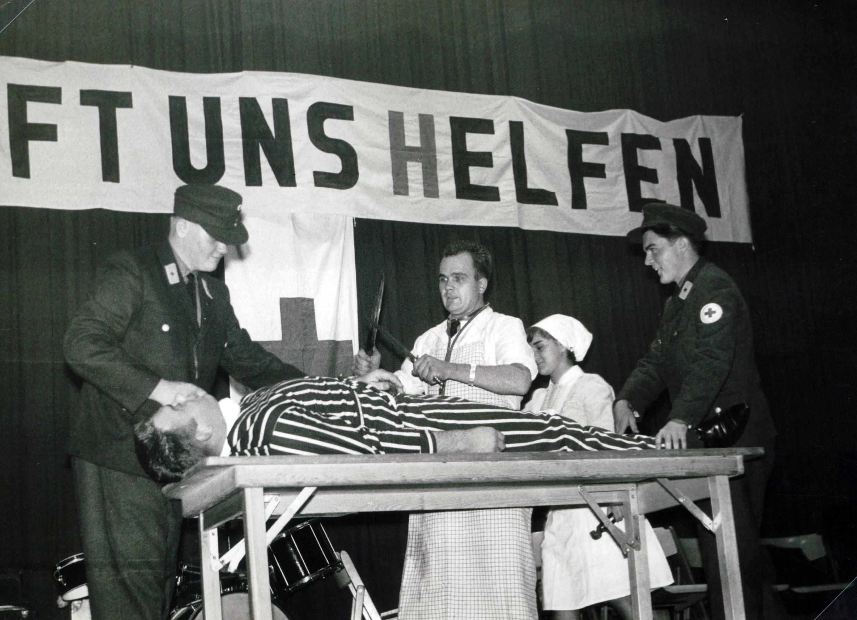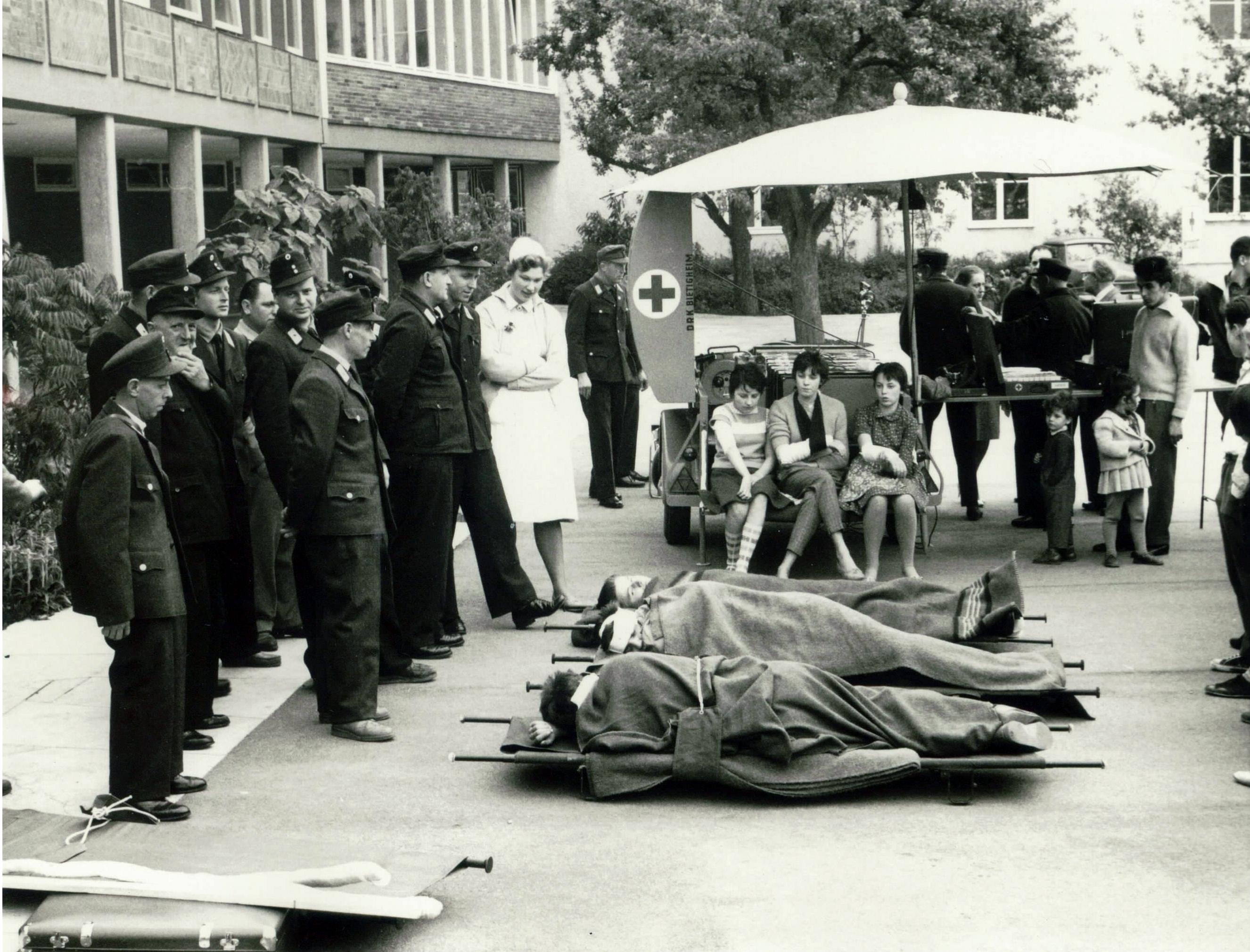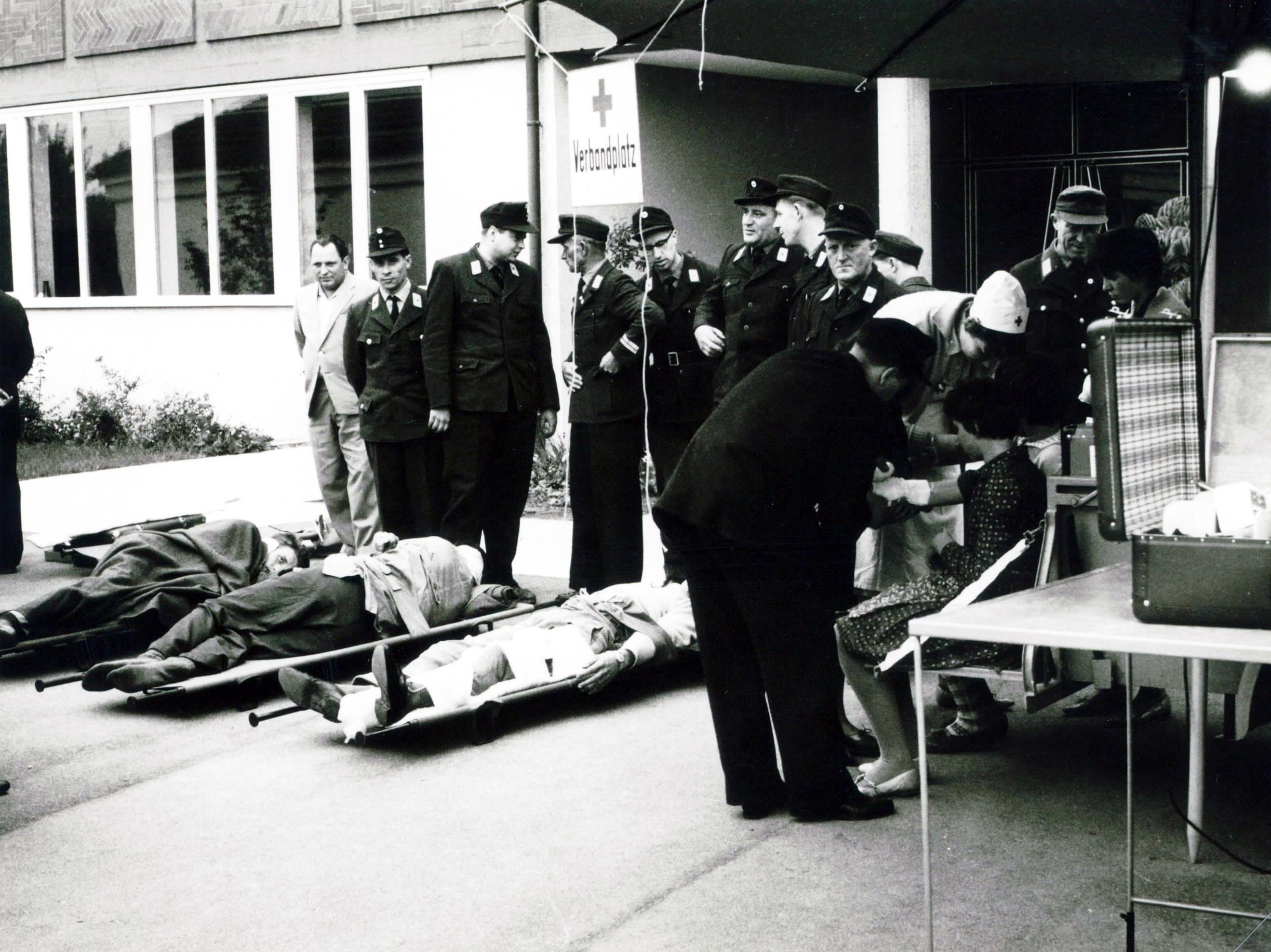 Ausbilder Rolf Seitz führte die ersten Erste-Hilfe-Kurse für die Bevölkerung durch. Es gab Pflichtstunden, die vom Bereitschaftsarzt Dr. med. Marggraf unterrichtet wurden.