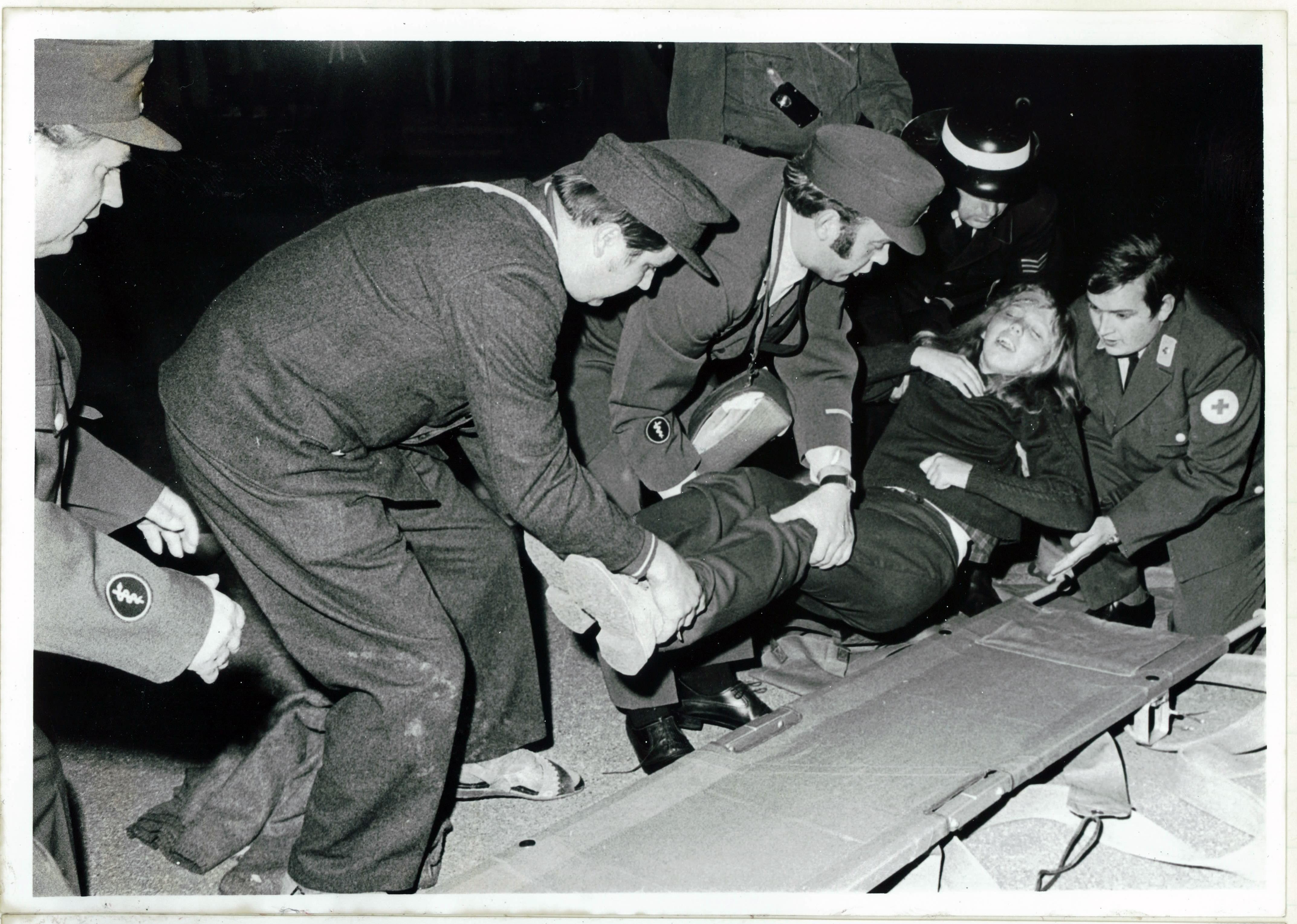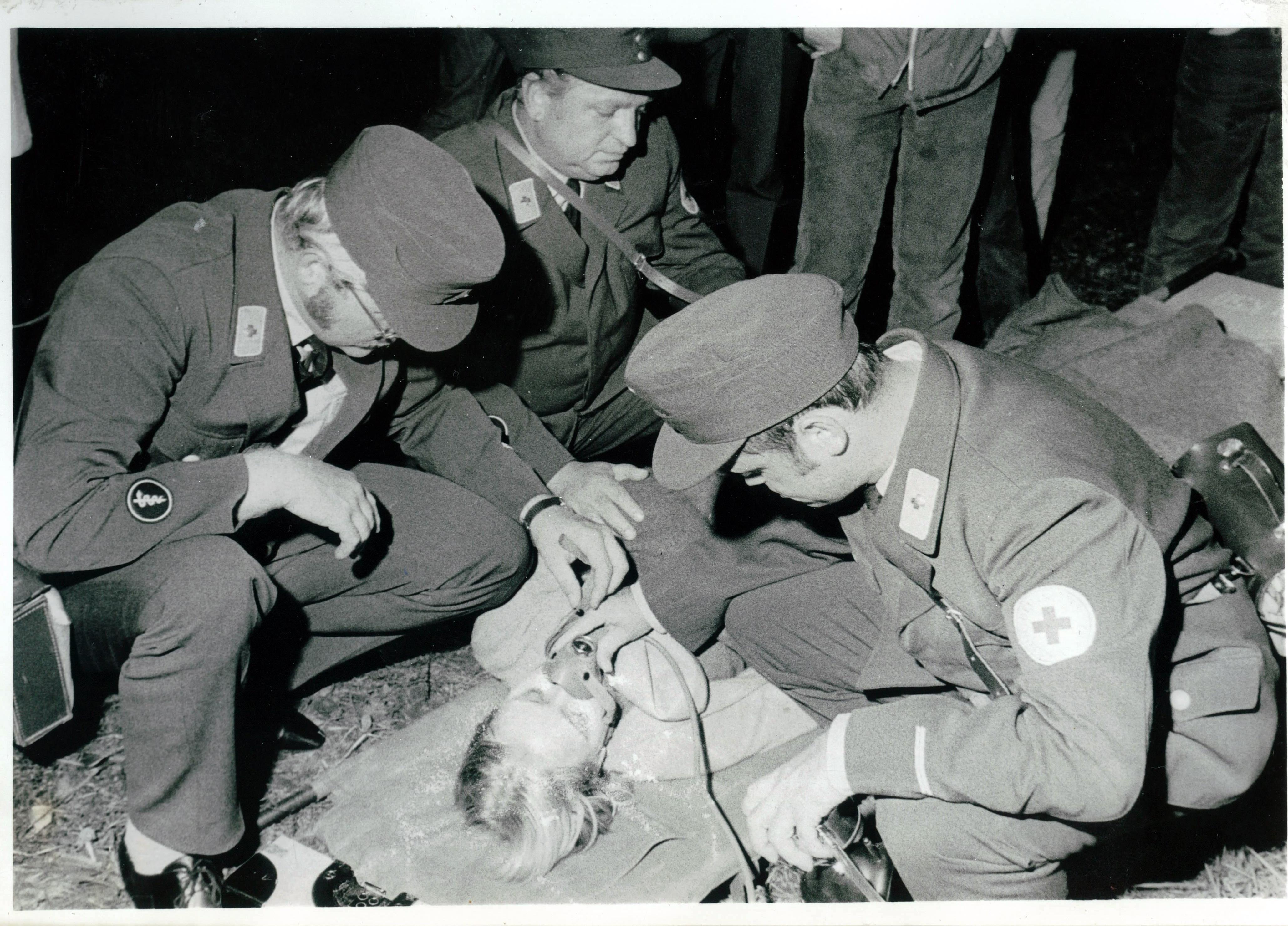 Das neue Einsatzfahrzeug der Feuerwehr Kleinsachsenheim wurde mit einer größeren Schauübung im September eingeweiht. Bei einer Nachtübung der Freiwilligen Feuerwehr Sachsenheim mit Drehleiter aus Bietigheim an der Frauenschule (heute Lichtensterngymnasium) wurden ein Krankenwagen aus Ludwigsburg und die Aktiven des DRK-Ortsvereins alarmiert. Sie halfen bei der Rettung und Versorgung der realistisch geschminkten Verletzten.